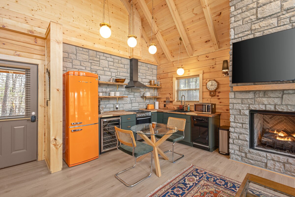 Welcome to Pedal and Perch, a custom-designed and built accessory dwelling cabin just minutes from downtown Bentonville, AR, Walmart HQ, and miles of incredible mountain biking. Enjoy a serene setting that tucks you among the trees and makes you feel like you are staying in your own treehouse. The cabin features a custom kitchen, one bathroom, a queen bed in the loft, a pullout sofa on the primary floor, and your very own outdoor bathtub looking in to the valley below.
