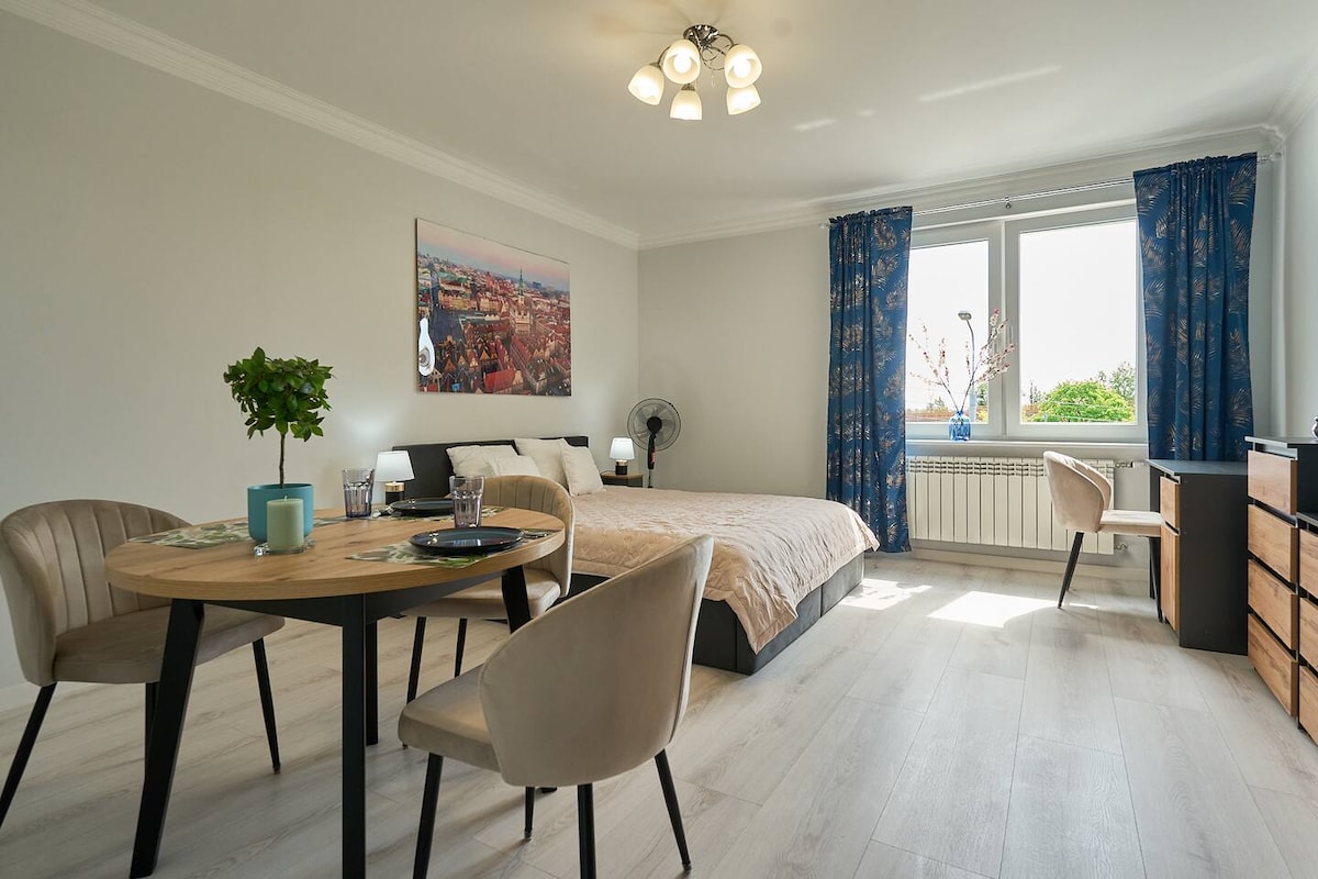 -Freshly renovated apartment in a quiet area of Poznan - Perfectly connected place - 1 minute - bus, tram, train station -Parks, Panorama shopping centre, grocery shops, service points and restaurants nearby -Comfortable double bed, workspace and smart TV -Separate kitchen (cooker, oven, dishwasher, coffee machine) -Bathroom with a shower -Parking space on the property We are waiting for your reservation :)