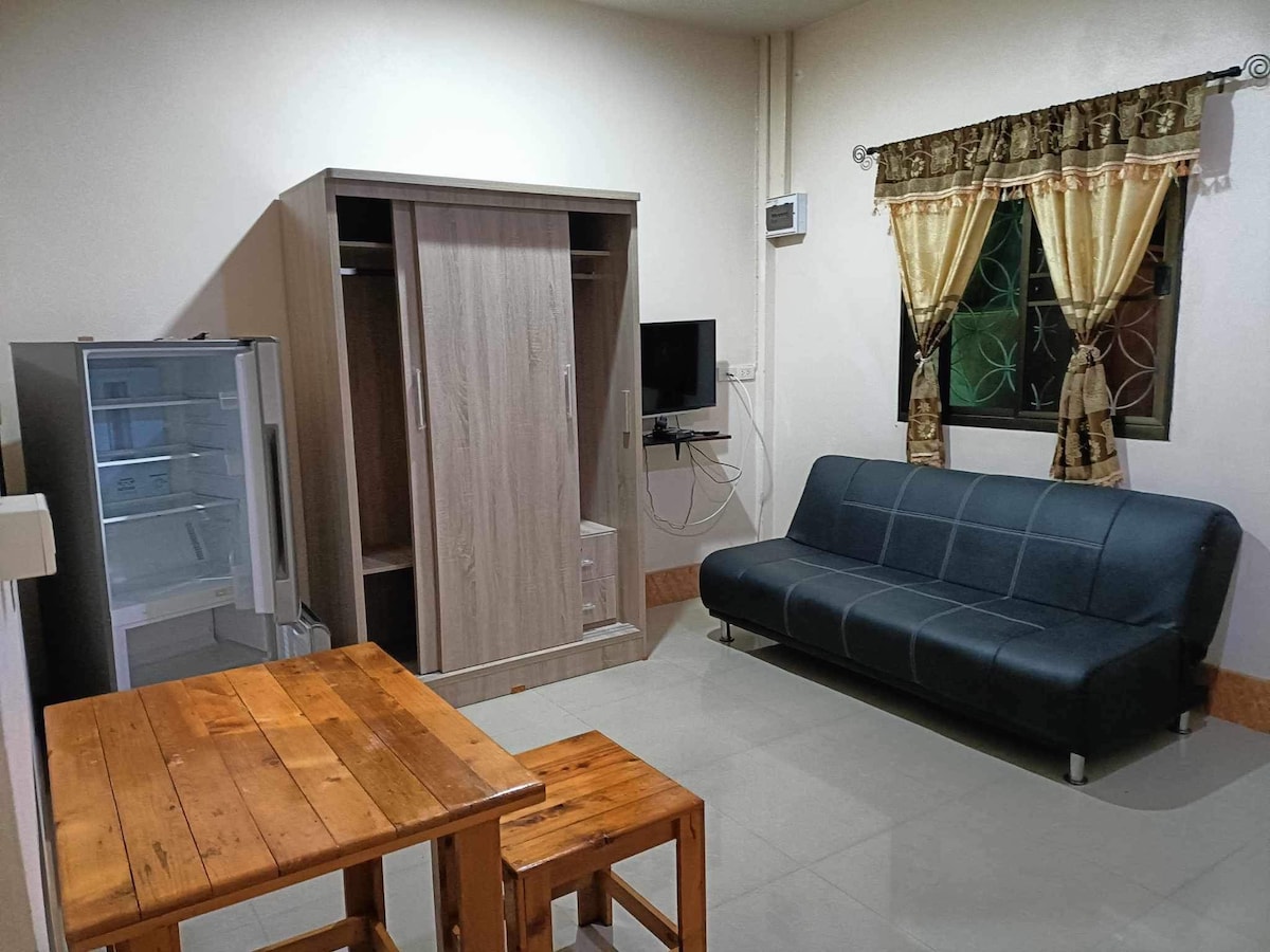 You will have a nice time at this comfortable private room located in Roi Et, a peaceful area near the city centre. The room is decorated and clean for your perfect stay. Amenities such as A/C, Wifi, TV, hot water, towel, bottled water, kettle, table and chairs are provided for your convenience.