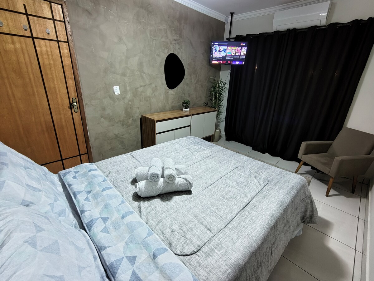 City Hall have fun with the whole family in this place full of style and comfort. Privileged and strategic location, close to the city's main high-end condominiums Accommodation for NIGHT PARTIES is PROHIBITED. The house has: - 2 bedrooms (1 of them with air conditioning) - 2 baths - Retractable sofa to accommodate up to 2 people. - Kitchen with cooktop/fridge/microwave/air fryer/coffee maker. - Laundry Machine Gourmet area with pool and chairs for rest. - Vacation for 2 cars