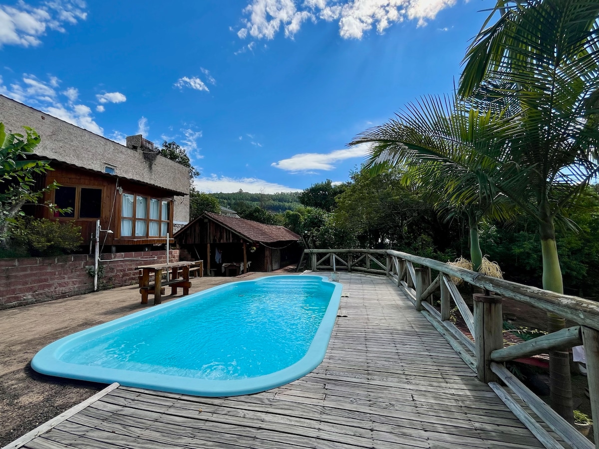 Desfrute de uma casa de campo aconchegante, com piscina, privacidade e uma vista deslumbrante do pôr do sol. Nossa casa oferece uma excelente estadia, 2 quartos (quarto casal com ar condicionado), 2 banheiros, rede Wi-Fi, sala confortável com lareira, piscina com amplo deck, cozinha completa com fogão à lenha campeiro, churrasqueira interna e externa, louças e eletrodomésticos. Um refúgio feito para desacelerar, recarregar as energias e apreciar cada detalhe!