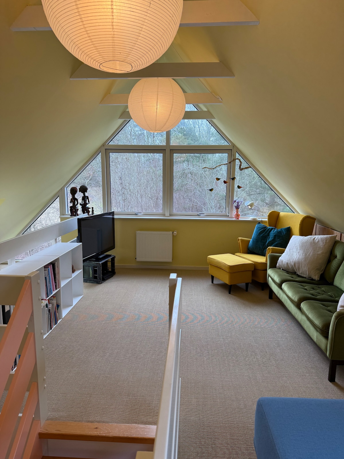 WATERFRONT APARTMENT, BEATYFULLY LOCATED – CLOSE TO ODENSE CENTER - Free parking and bikes available. Located above the ground floor and is done in a personalized scandinavian style with calm colors and a lot of light. Private entrance from a staircase/balcony, view to forest and water. The apartment is fully furnished. Two bedrooms, spacious bathroom and a integrated kitchen/ living room. We live in the ground floor and are reachable at any time. City center is a ten minutes bike ride away.