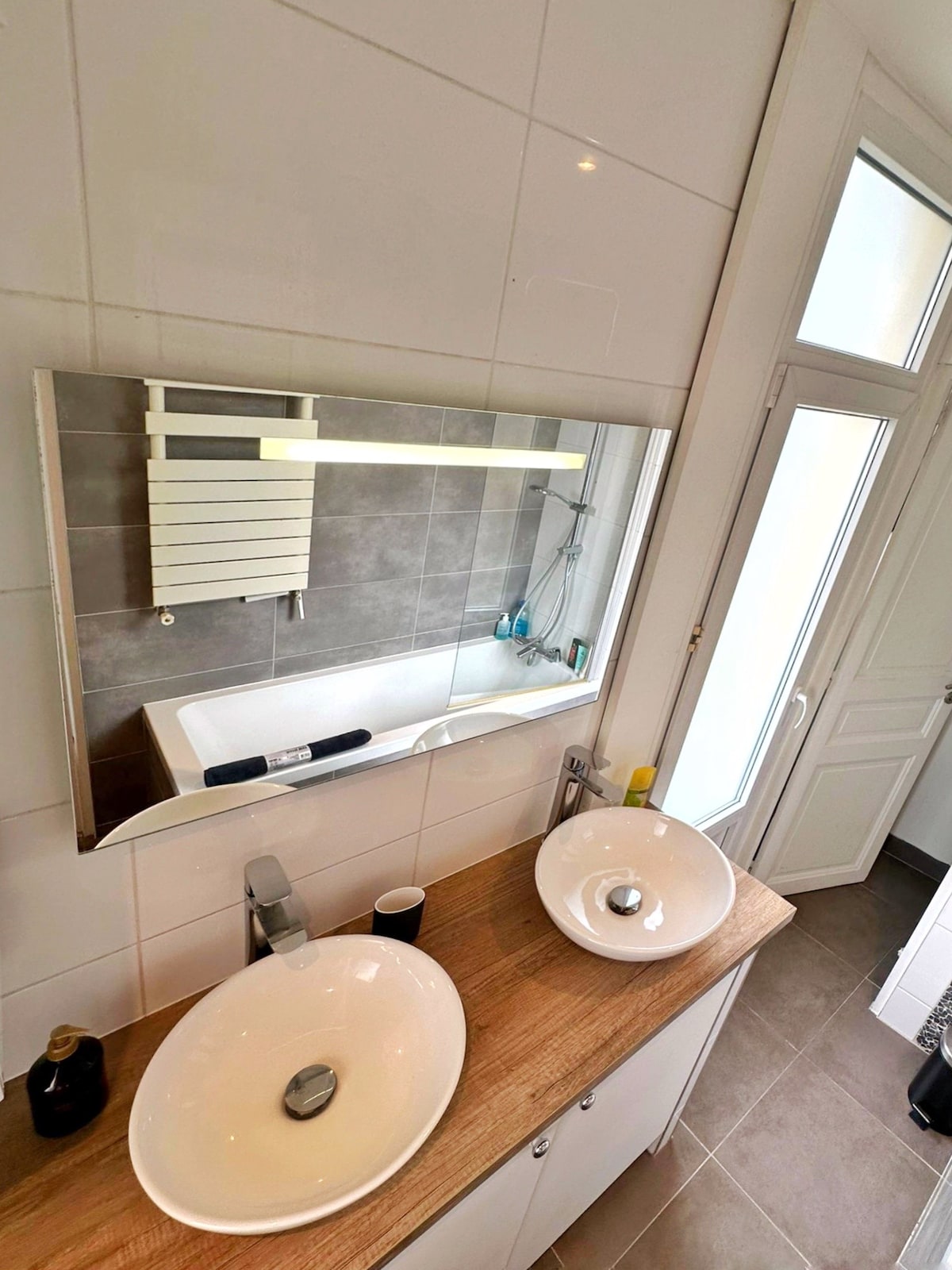 Enjoy a beautiful brand new 40 m² apartment with its 21 m² garden located in the center of Romainville, 2 minutes from the Romainville Carnot metro station, 17 minutes from the center of Paris + private underground parking and several bus lines. The accommodation has a living room with a sofa bed and an equipped kitchen as well as a bedroom with a large double bed. You will find nearby a wide range of shops, restaurants, bars, cinemas, butchers, supermarkets, pharmacies...