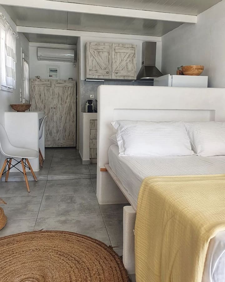 Zacharias seaside Studio was built using Kimolos' traditional architecture, completely renovated to a holiday home, and decorated with taste. It offers all modern conveniences, warmth, and cleanliness. It is the perfect location for an amazing vacation and moments of calmness by the sea.