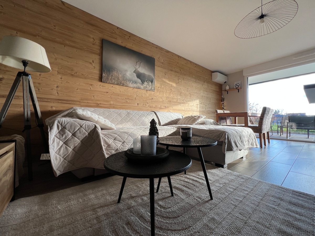Small independent studio of 16m² located in the heart of Alsace. - 5 min. walk to train station. - 40 min. from Europa-Park (car or shuttle). - 40 min. from Strasbourg (20 min. by train). - 20 min. from Colmar. (10 min. by train) All amenities are within walking distance: restaurants/media library/supermarket/self-service laundry... Great for couples with a child, single person, or two friends. A bed for 2 people. 140 X 190, retractable. A 90 X 190 bed. Private deck