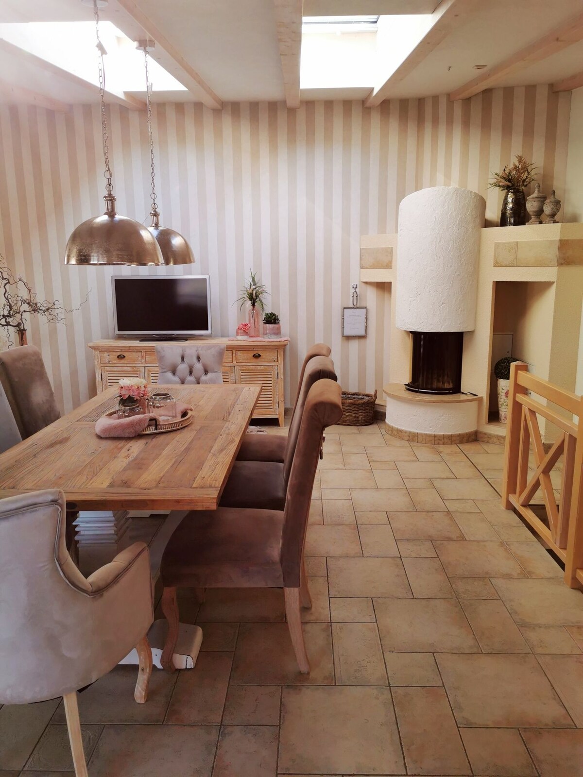 Experience Mediterranean flair in the heart of Germany. The place is characterized by its sustainable building fabric and its unique ambience. Oak beams and oak floorboards from Thuringia, clay plaster in extraordinary colors, a large oak table made of a trunk, a sophisticated sofa for chilling, a bedroom to dream, an Italian pellet stove and a cozy kitchen are ready for you. You will love the immediate vicinity to the forest.