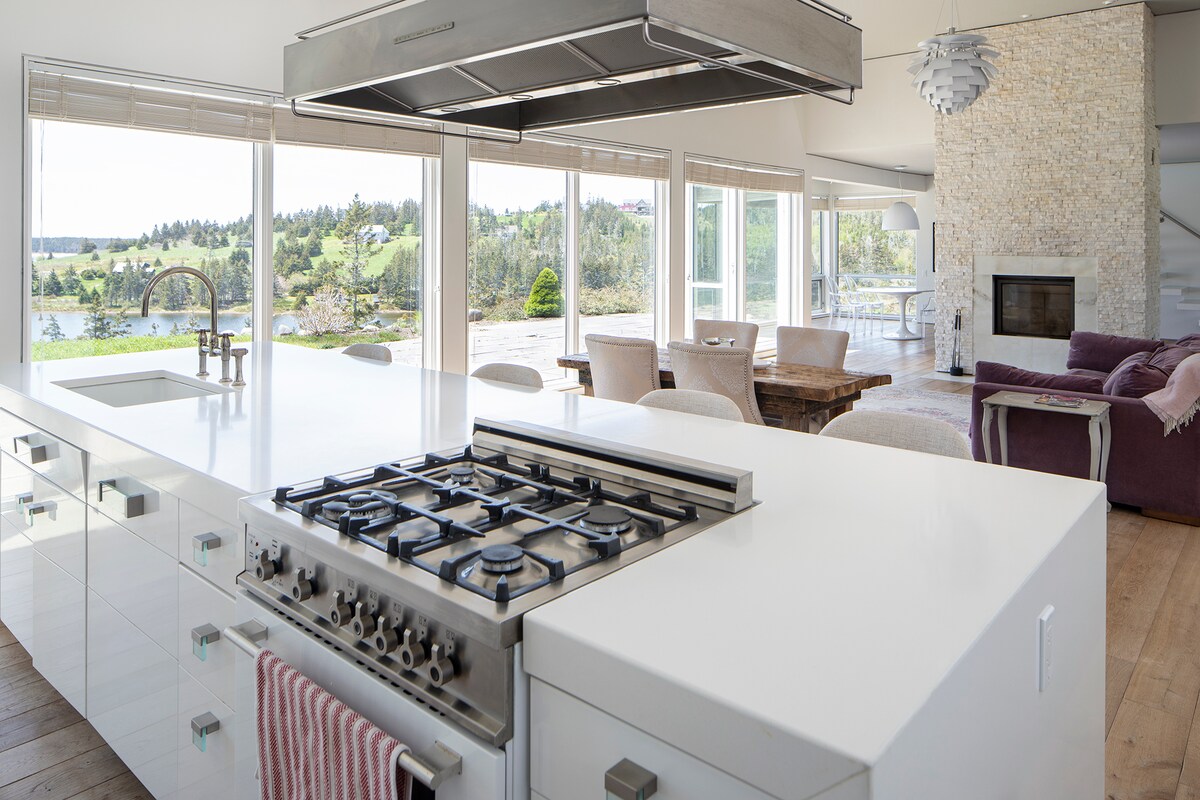 You found it - your next Nova Scotia getaway! Our astounding villa is situated in Feltzen South, a small village just outside of Lunenburg. You will love the breathtaking ocean views, clear view of Downtown Lunenburg, and quiet Spindler Beach just 2 minutes away! This architecturally intriguing home has been purposefully crafted with your comfort and enjoyment top of mind. On the main level, relax around the Renaissance Rumford fireplace, or develop your next culinary masterpiece in the chef's k