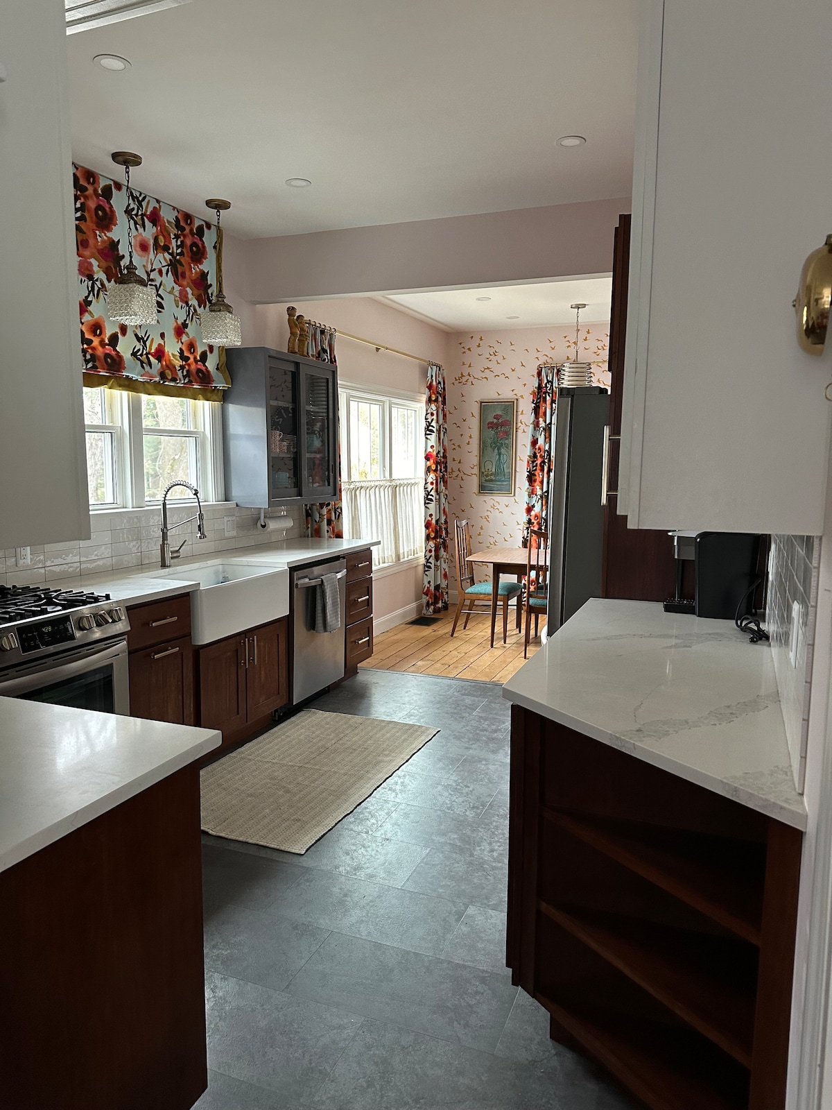 Enjoy a special experience in your luxury, private one bedroom flat, located in charming downtown Milford. While apart of a triplex, you will have your very own flat that includes everything you will need to have an outstanding stay. This recently remodeled flat includes an open floor plan with a well equipped kitchen, inviting living room, spacious bedroom with a queen size bed and even an over-sized desk so that you can "work from home", and a "to die" for bathroom. Two blocks from Mainstreet.