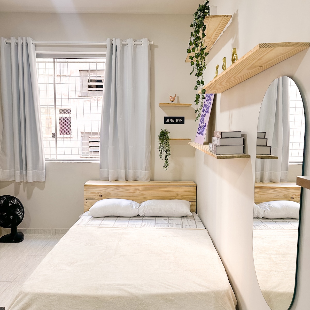 Spacious, private room, easy access, quiet and organized. We are a complete, cozy space, and everything is organized with great affection so that everyone feels at home. A large room for up to 4 seats with an integrated kitchen, balcony, bathroom, air conditioning, minibar, closet and TV. Residential and quiet neighborhood, two blocks from Av. Silva Lobo, one of the main avenues of Belo Horizonte with all types of commerce, pharmacies, supermarkets, bakeries, shops and bars.