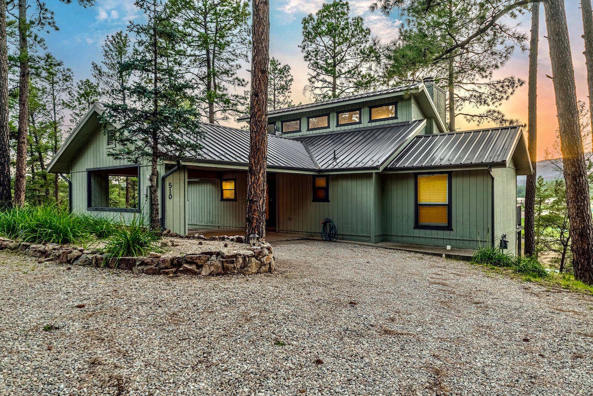 Experience a peaceful getaway at this newly remodeled 1800 sq ft single story home in the heart of Ruidoso. Excellent location just a few minutes from the Midtown Shopping District, Grindstone Lake, Wingfield Park, Inn of the Mountain Gods Casino, golf course, & Ski Apache. Experience tubing or zip lining at Ruidoso Winter Park or try your luck at Billy the Kid Casino. The home has Central AC/ Heat, electric fireplace, & premium bedding. Pet Friendly