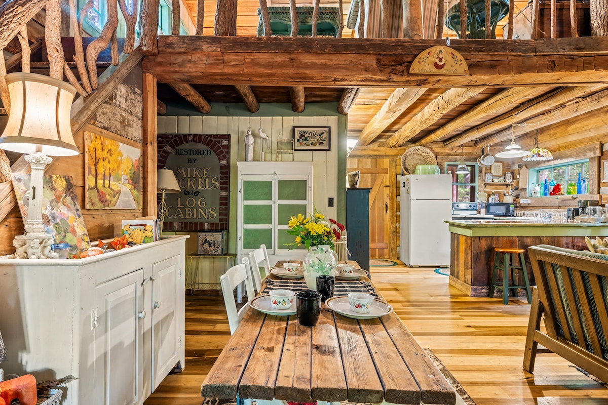 Designed with couples in mind, where relaxation and entertainment await! You'll enjoy the serenity of a small-town country getaway. Features: •Hot Tub •Arcade •Popcorn Movie Bar •Board Games •Claw Tub •King bed •Workspace with vanity. •Twin bunk bed •Murphy Bed for 5th guest •Fully equipped kitchen •Outdoor patio with seating for two and completely private hot tub. •Wi-Fi and smart TV •Washer/dryer Ideal for: • Couples seeking a romantic getaway • Small families looking for a relaxing vacation