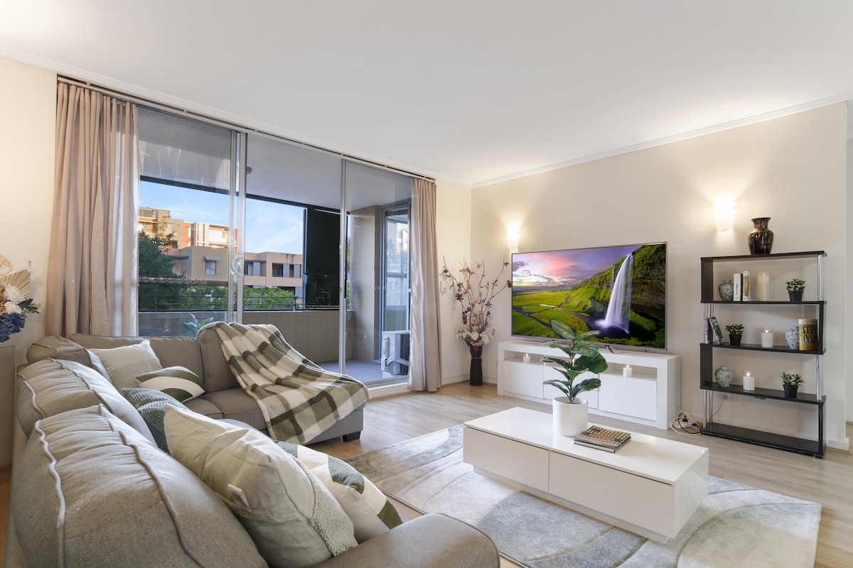 Enjoy a stylish **2-bedroom, 1-bathroom** apartment in **Wentworth Point**, perfect for families or business travelers. Just a **5-min walk to the ferry** and close to **Rhodes Station, Marina Square, and Sydney Olympic Park**. Features **a bright open-plan living area, fully equipped kitchen, private balcony, internal laundry, and secure parking**. With **shops, cafés, parks, and scenic waterfront walks nearby**, this is the perfect base for your Sydney stay!