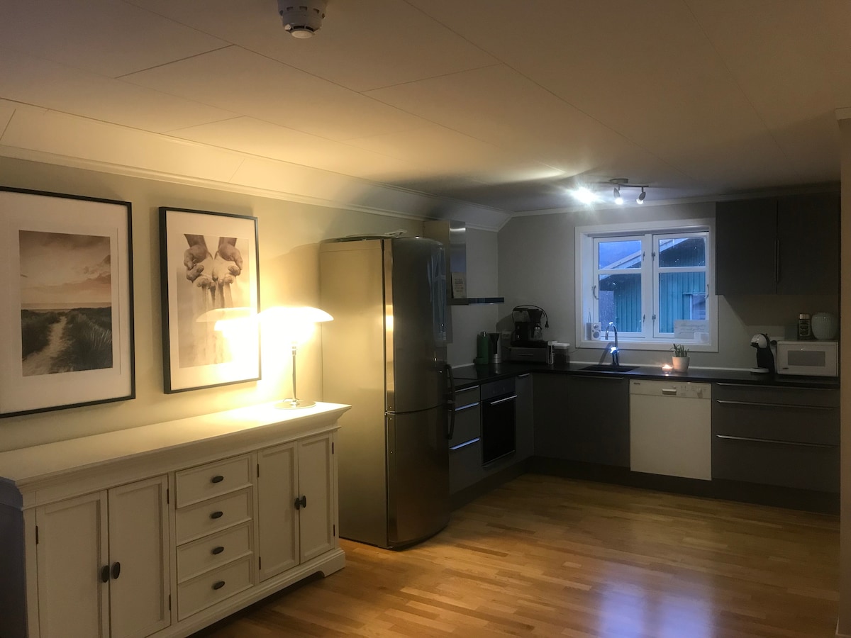 Welcome to our new and nice apartment in the center of Ålgård - and at the same time located on a farm. You live right next to great nature experiences and wake up to views of the mountains. Kongeparken, Preikestolen, Norwegian Outlet, Månafossen and Jærstrendene - are all nearby attractions. A perfect starting point for a family on a trip. The area is quiet and the apartment is located so that guests get privacy. Also suitable for business trips.