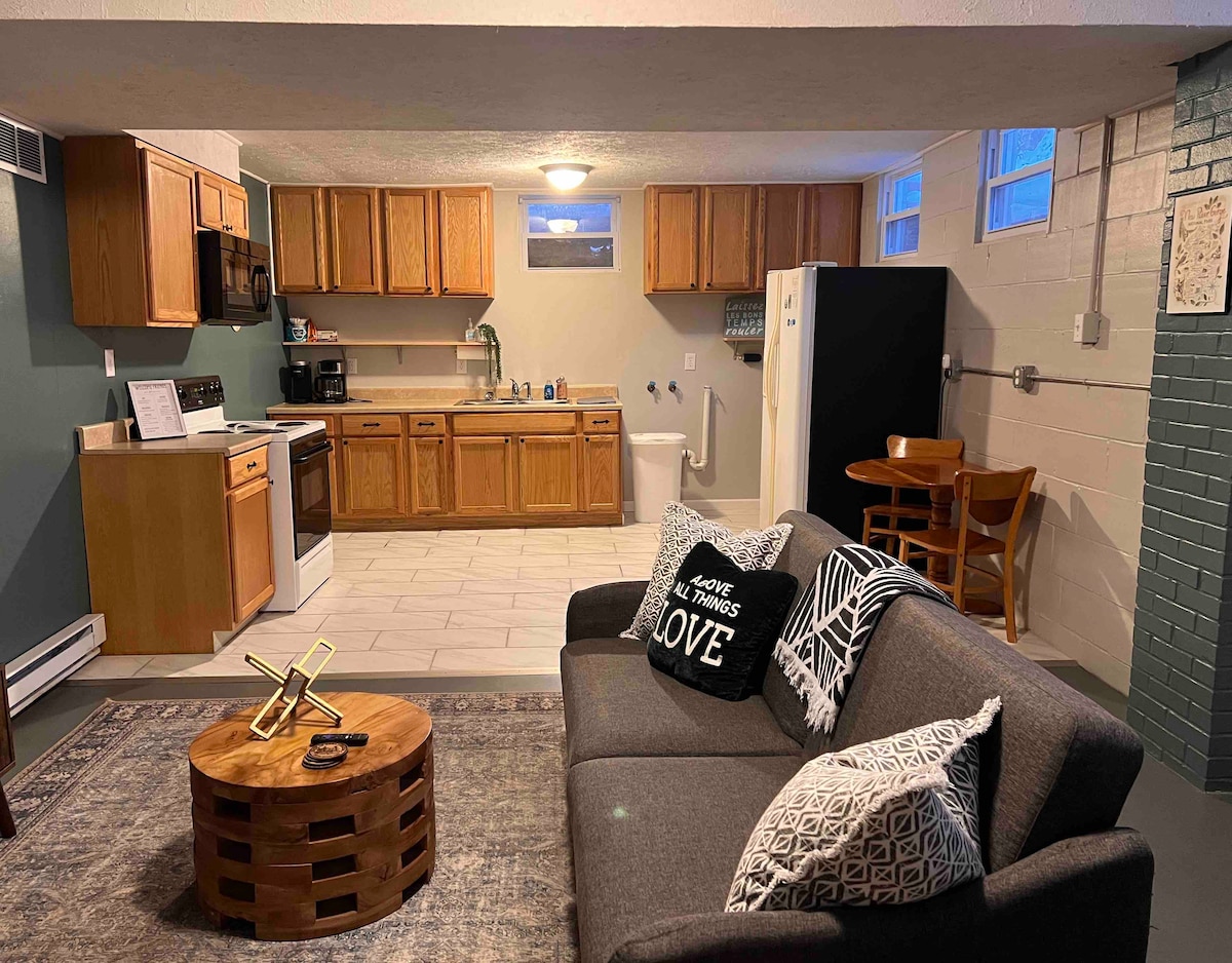 Enjoy easy access to almost anything from this centrally located home. Our home is a one bed, one bath studio apartment, located on the ground level. With its own separate entrance off to the side to offer as much privacy as you’d like. It accommodates two people. A short drive to New River Gorge National Park and within minutes of great restaurants. 13 miles to Winterplace