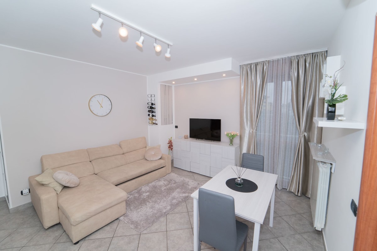 Cozy modern two-room apartment in Trecate, just 5 minutes from Novara, 30 minutes from Milan and 20 minutes from Malpensa airport. Easily accessible ground-floor two-room apartment, with a bright living area and a fully equipped modern kitchen. Fast Wi-Fi and reserved parking included. The location is ideal and strategic thanks to the proximity to supermarkets, shops and restaurants, making every stay comfortable, practical and pleasant.