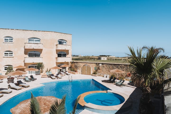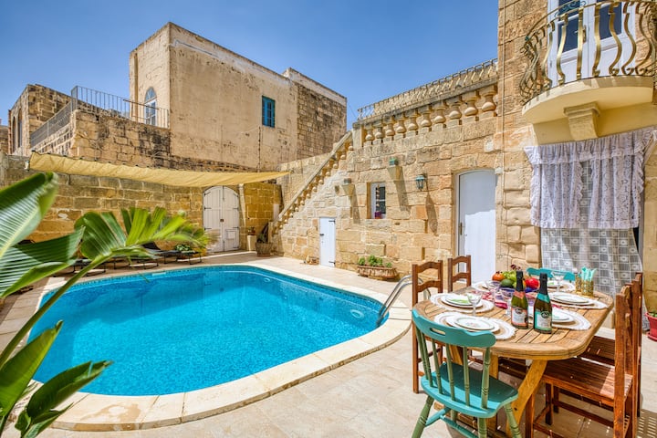 300y/o Gozo Villa: 2 pools, roof lounge, sea views