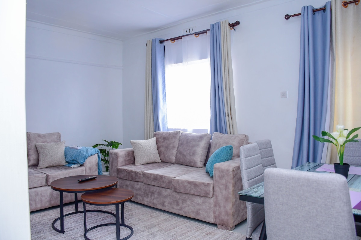 Kick back and relax in this calm, stylish, cozy and modern space that is conveniently located in Amani Court that is off Uganda road. The space offers a perfect blend of comfort and functionality for a restful stay.