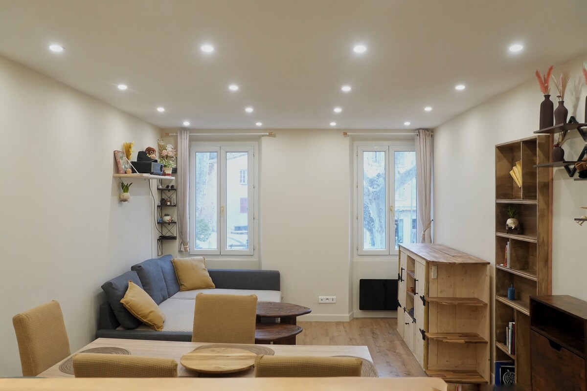 Treat yourself to a break of calm and comfort in this charming, fully private accommodation. Old workshop renovated with care, it is ideal for a smooth stay. Easy to access, it offers a separate entrance and free parking right in front, for maximum convenience. Enjoy an outdoor space away from prying eyes: Jacuzzi, relaxation area, electric barbecue and shaded dining area under a magnificent century-old fig tree.
