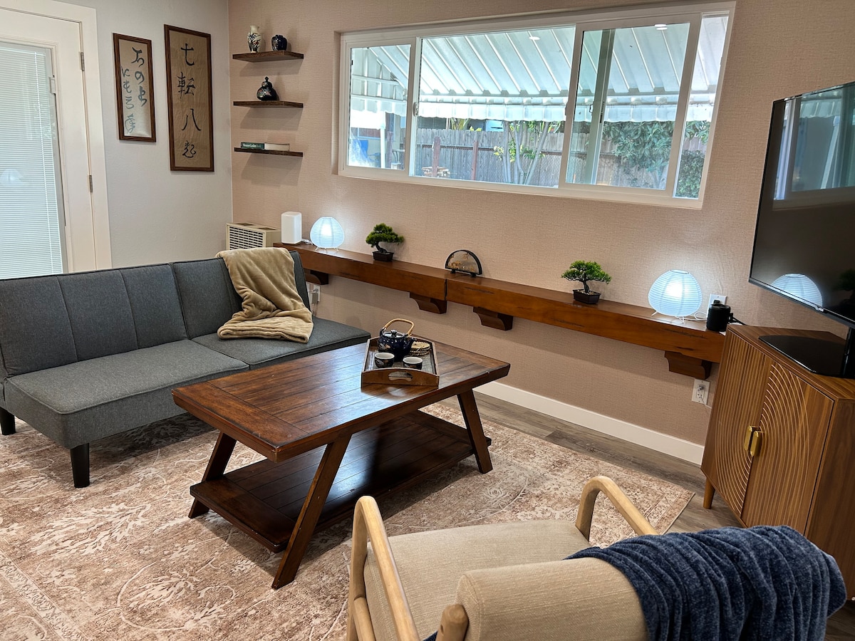 Stunning guest house that's 15 minutes to San Diego Zoo + downtown San Diego. The cottage is decorated with mid-century and one-of-a kind furniture in a comfy living space overlooking a gorgeous garden. Enjoy the the garden on your private deck, watch TV while relaxing in the handcrafted Nicaraguan rocker or 1950s Danish slipper chair. The cottage also has a comfy queen-sized bed and a full kitchen that's stocked with what you'd need. Oh, and all guests arrive to a homemade loaf of bread.