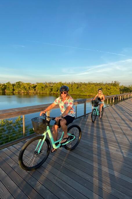 Studio beach cottage experience in North Naples. Take one of the two complementary bicycles on an easy 15 min bike ride to the beautiful Wiggins Pass State Park or Vanderbilt beach. Just 3 miles from the popular Mercado shops, restaurants and theater. Prefer to walk? It's less than 10 mins walking to multiple great restaurants, grocery stores, and even paddle board/boat rentals, fishing trips, dolphin eco sunset & tours. Feeling adventurous? Take one of double kayaks from the dock to the beach.