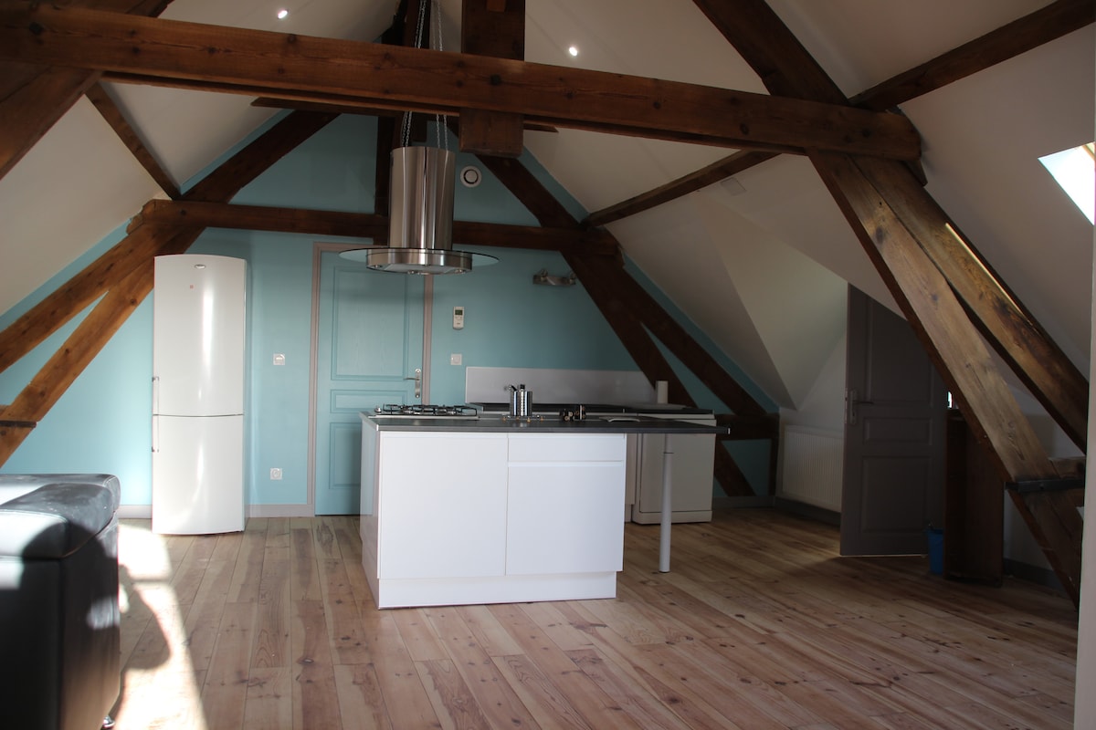 We hope to welcome you soon to our new apartment at "La Maison Rouge" located on the Lille/Dunkirk highway and SNCF line, near the train station and highway exit close to the village). - Independent apartment - Large terrace with panoramic countryside views - Wood-burning stove - Fully equipped kitchen + washer-dryer - Very carefully chosen 180/200 bedding to ensure maximum comfort - Ultra-fast fiber Wi-Fi, Apple and Orange TV - Many shops within walking distance