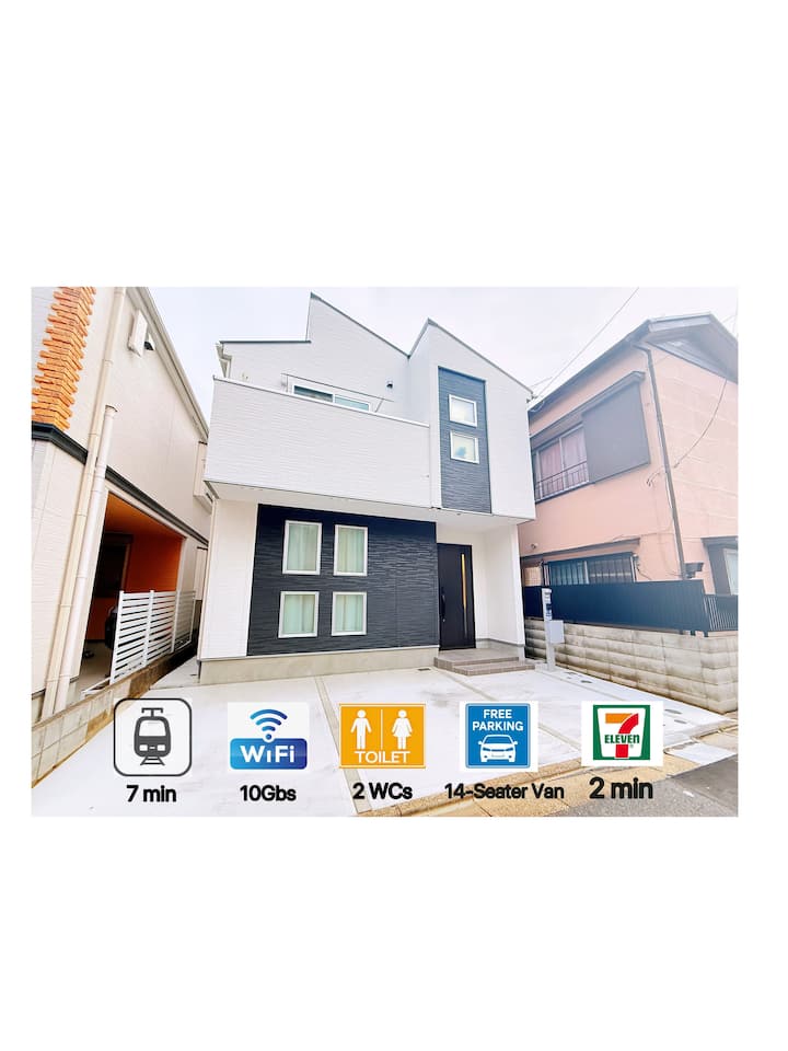 Asakusa, Ueno, Ginza, Roppongi, Shibuya, no transfer | 3 min walk from the station | Detached house | 9 people | Tokyo Shitamachi | Haneda direct bus | Kita Senju