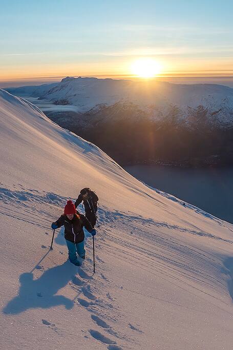 Winter fjord and mountain hike