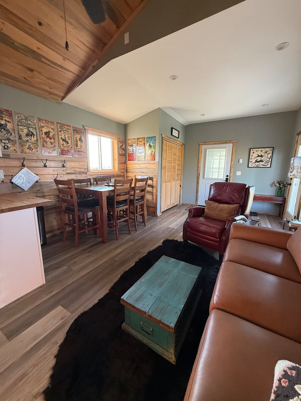 Welcome to your cozy tiny home retreat minutes from downtown Sheridan, WY. This charming tiny home is the perfect blend of rustic comfort and style. This tiny home will feel spacious with its vaulted ceilings and loft. The tiny home has a queen bed downstairs in a closed off bedroom. Enjoy the open loft with one queen bed and a fold out futon, a great place for kids to enjoy the tiny home. A fully equipped kitchenette, and fast Wifi await.