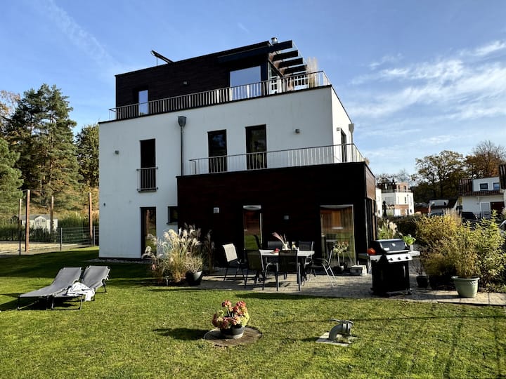 5* lakeside cottage with dog, sauna, garden, 140 sqm
