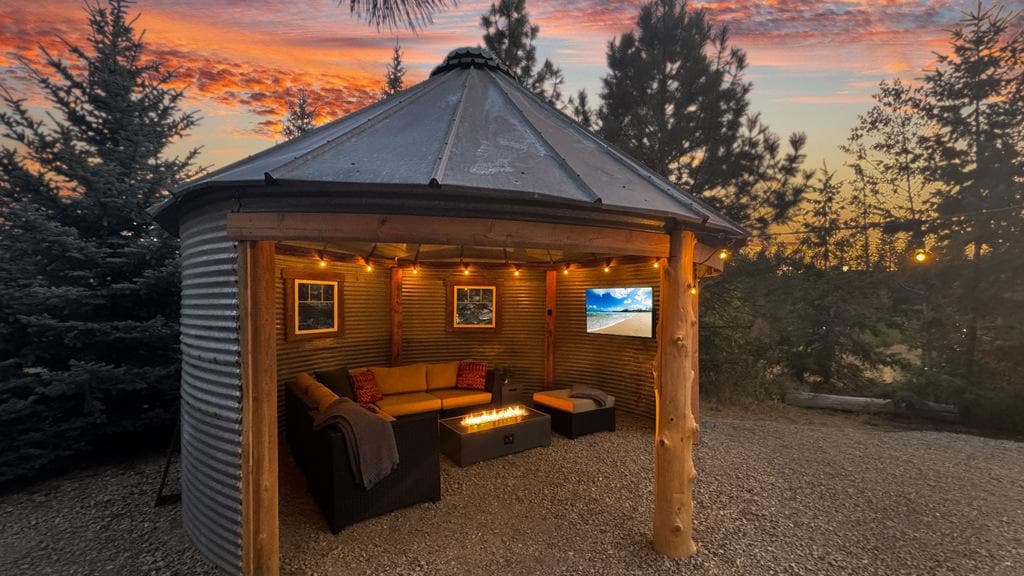Covered Silo Lounge | Fire Pit Escape + 1PM IN/OUT
