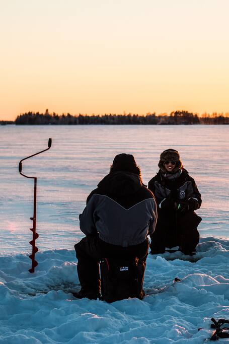 ICE FISHING ON THE FROZEN LAKE