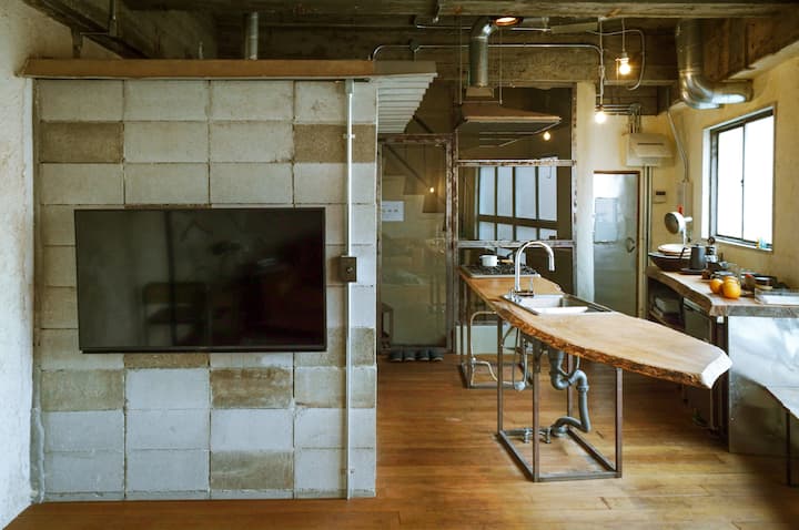 Entire building rental/Parking/5 minutes to Kobe Station/Discount for consecutive nights/Sannomiya, Himeji Castle nearby/Full kitchen/Washing machine/5 beds/Spacious art space