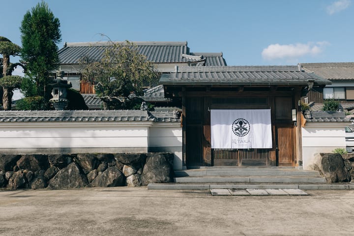 Yutaka, a private house surrounded by nature, with a Japanese garden, an atrium living room, and a BBQ