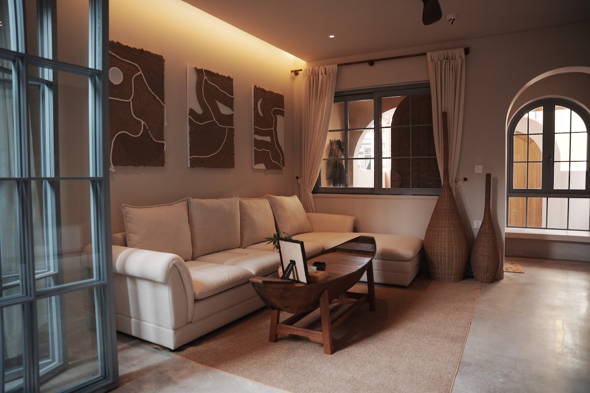 🎁 A newly built villa just 3 minutes’ walk to both Cua Dai Beach and Thu Bon River, offering a rare blend of privacy, wellness, and coastal charm. Enjoy a private pool, beach yoga, and walkable access to local restaurants and spas. With 3 serene bedrooms (2 king beds + 2 singles), it comfortably hosts 6 adults + 2 kids (under 6) — perfect for families seeking space, relaxation, and meaningful connection in a refined, tranquil setting.