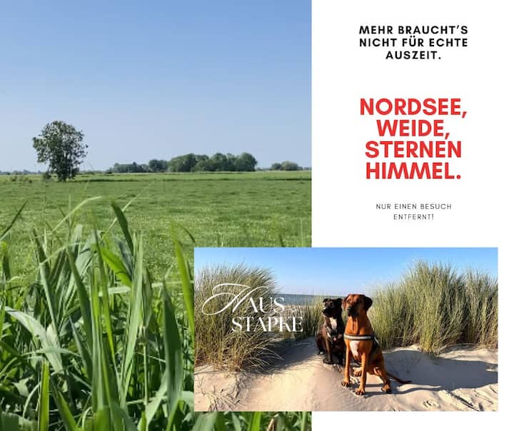 Houseboat "Cabin at the Nixensteg" Wangermeer with dog