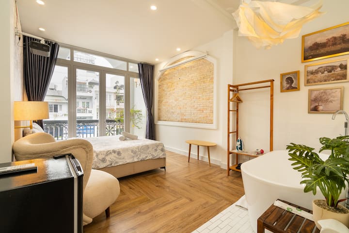 Hidden Gem w/ Shiny Balcony, Bathtub & Projector