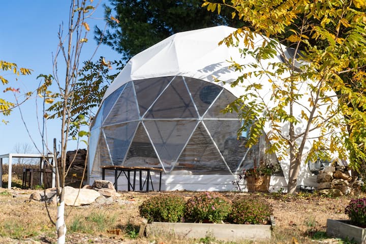 Sunset Dome Rustic Camping | King Bed | Small Farm
