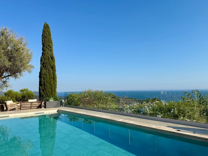 House 2 steps from Ramatuelle, 180° sea view, beach
