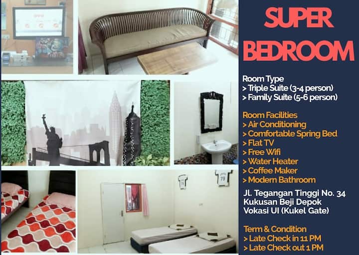 Cozy house, 2nd floor, 5 bedrooms, near margonda