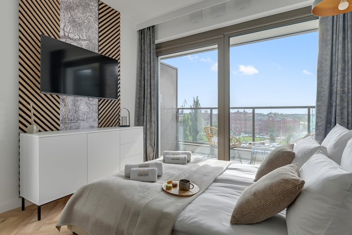 Blue & Fun Riverside Apartment with Gym & Sauna
