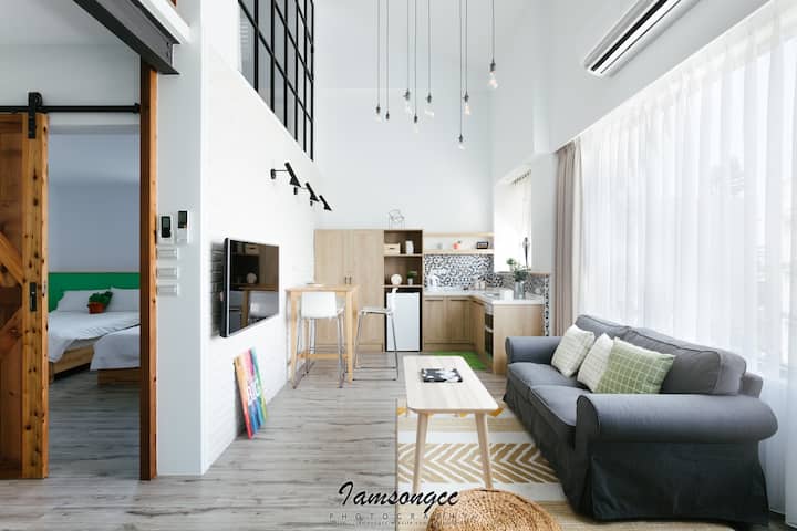 White and elegant, newly furnished, spacious and bright, pure white bathtub, heating and cooling air conditioning, 65-inch TV, kitchenette, washing and drying machine, parking lot, electric charging station