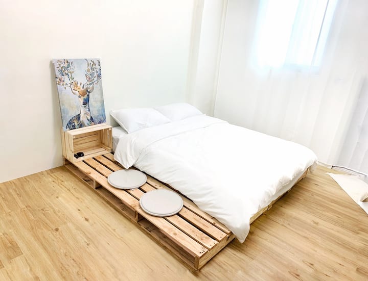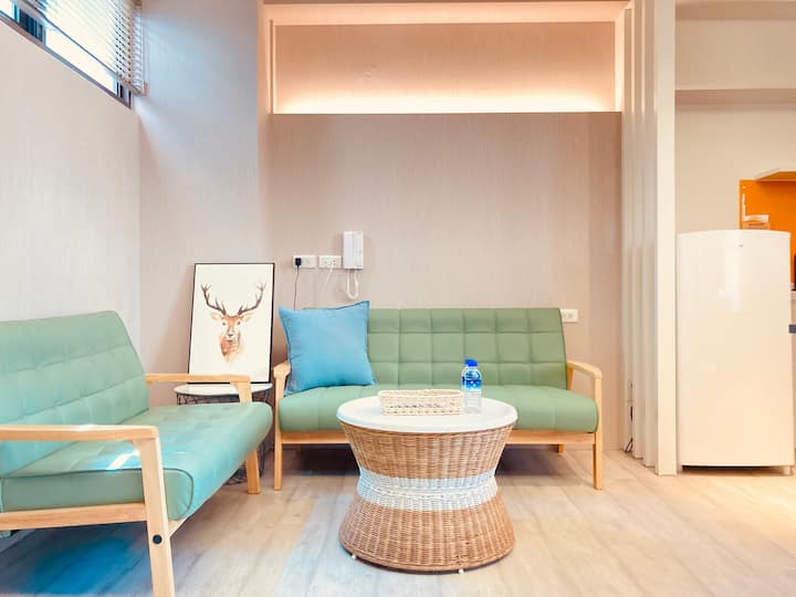 (Room 201) Downtown Baroque Sun with Large Balcony 2-4 Person Large Suite Near Nanfang Shopping Center, Dadao Night Market, Train Station (Please leave a message for parking space)