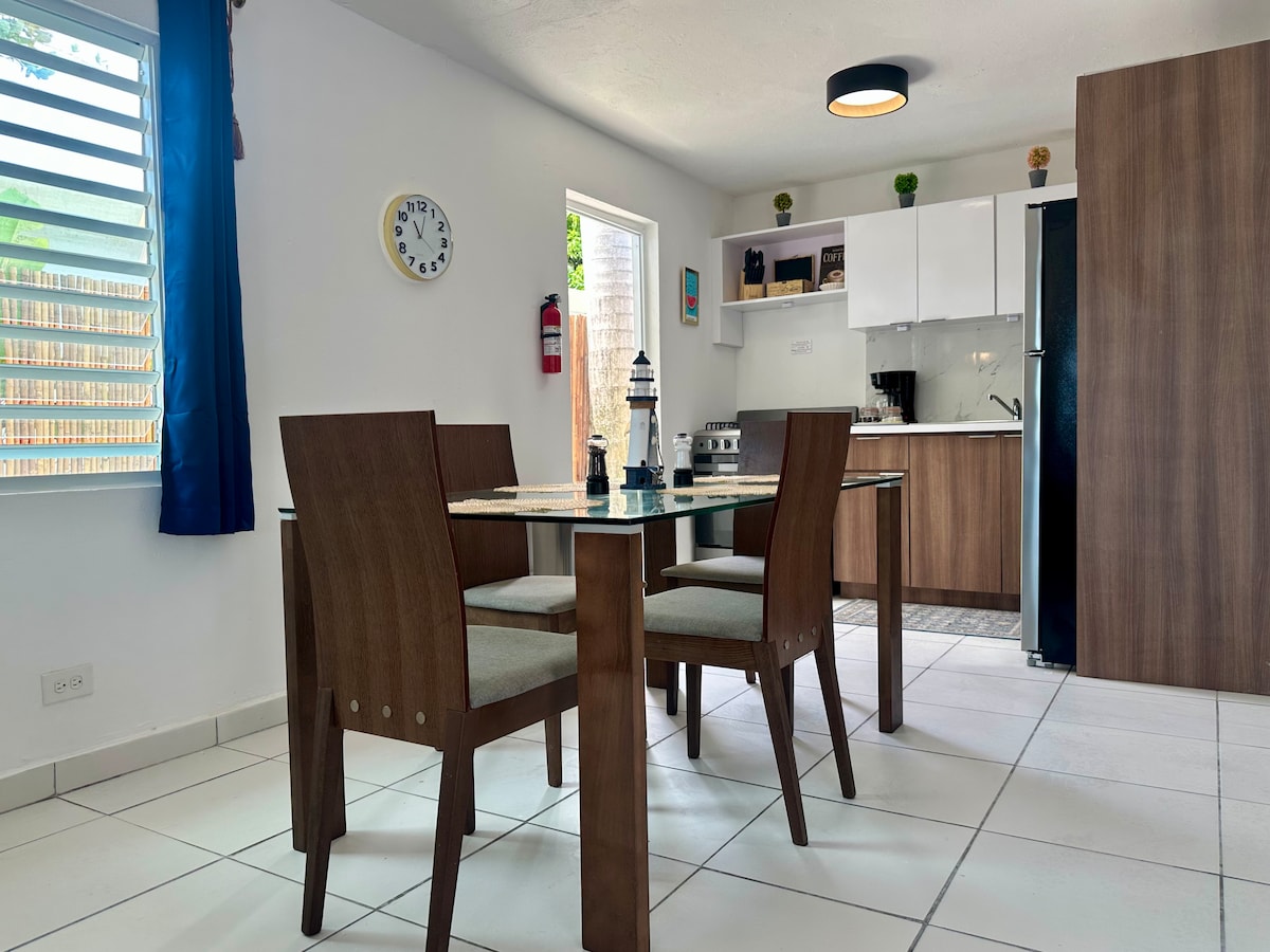 The Cozy Studio is located in a two-unit property with an independent entrance and parking. Fully equipped with a kitchenette Nestled in a charming neighborhood, this studio serves as a central hub for exploring all that Puerto Rico has to offer. Enjoy peace of mind during your stay with our solar panels and battery system, ensuring your vacation remains uninterrupted. Experience the best of the Caribbean in a modern space, located near supermarkets and restaurants. Your unique vacation awaits!