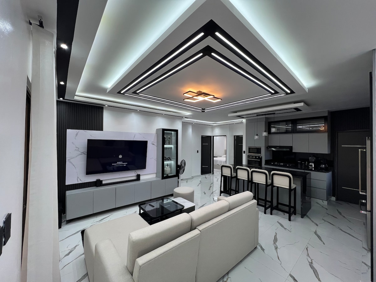 Luxury penthouse with private jacuzzi in an exclusive, safe, and peaceful residential area. Spacious and elegant: 3 bedrooms, 2 living rooms, fully equipped kitchen, cozy balcony, 5 Smart TVs, domino table, 4 air conditioners, washer, dryer, and 2 private parking spots. Perfect for couples, families, or friends. Enjoy a unique, stylish, and comfortable stay in the heart of San Francisco de Macorís. Your perfect getaway awaits!
