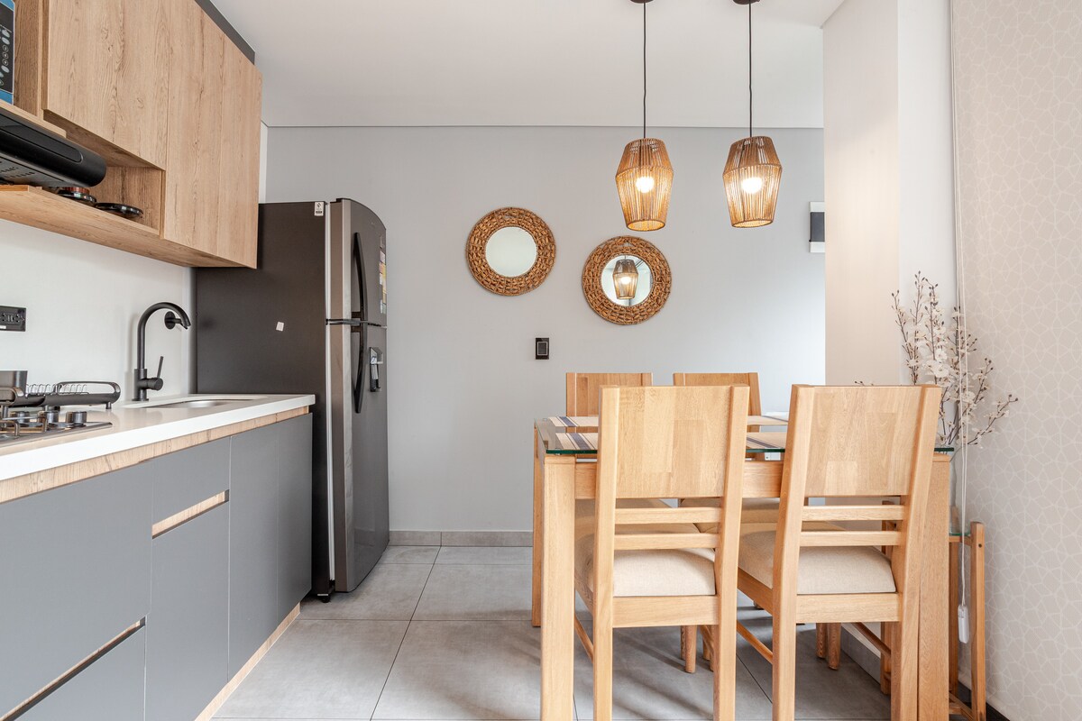 Enjoy a stylish experience in this centrally-located accommodation. Located just 5 blocks from Sabaneta Park, 10 minutes (800 meters) walk from Sabaneta Metro Station, 15 minutes walk from CC Mayorca. Near the accommodation you will find supermarkets, restaurants, pharmacies, etc. The accommodation is fully equipped for long stays and you don't have to worry about anything. Come and enjoy this cozy space and feel at home.