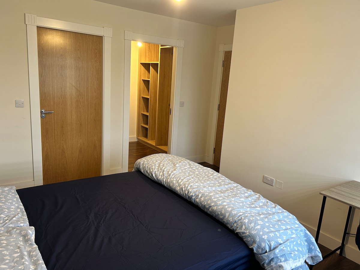Welcome to this relatively new listing, Escape to this cosy home, 25min from the heart of Dublin city. This large en-suite bedroom comes with a king-size bed. The apartment offers a fully equipped kitchen, an outdoor shared terrace, and super fast Wi-Fi. Enjoy lovely green views from the balcony, relax in the spacious living area, easy access to Dublin city centre via Coolmine train station just a 2 minute walk. 48h free parking in two 24h periods. Paid car parking next door.