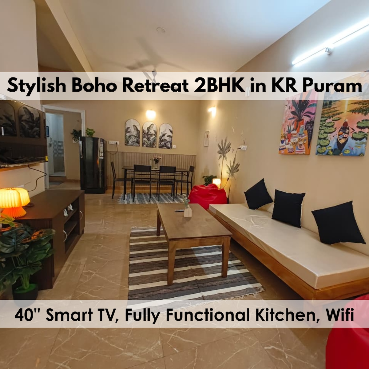 Experience living in the heart of Koramangala at our stylish modern penthouse with - A spacious open terrace—perfect for morning coffee or evening cocktails. - A fully equipped kitchen with * Cutlery, plates and glasses * Cooking pans * Electric stove * Hot water kettle * Air Fryer * Refrigerator * Toaster * Blender - Cozy interiors * Double bed king sized * Reading table * Garden table and chairs * Arm chairs * Bar counter and chairs - Ideal for * Couples * Solo travelers