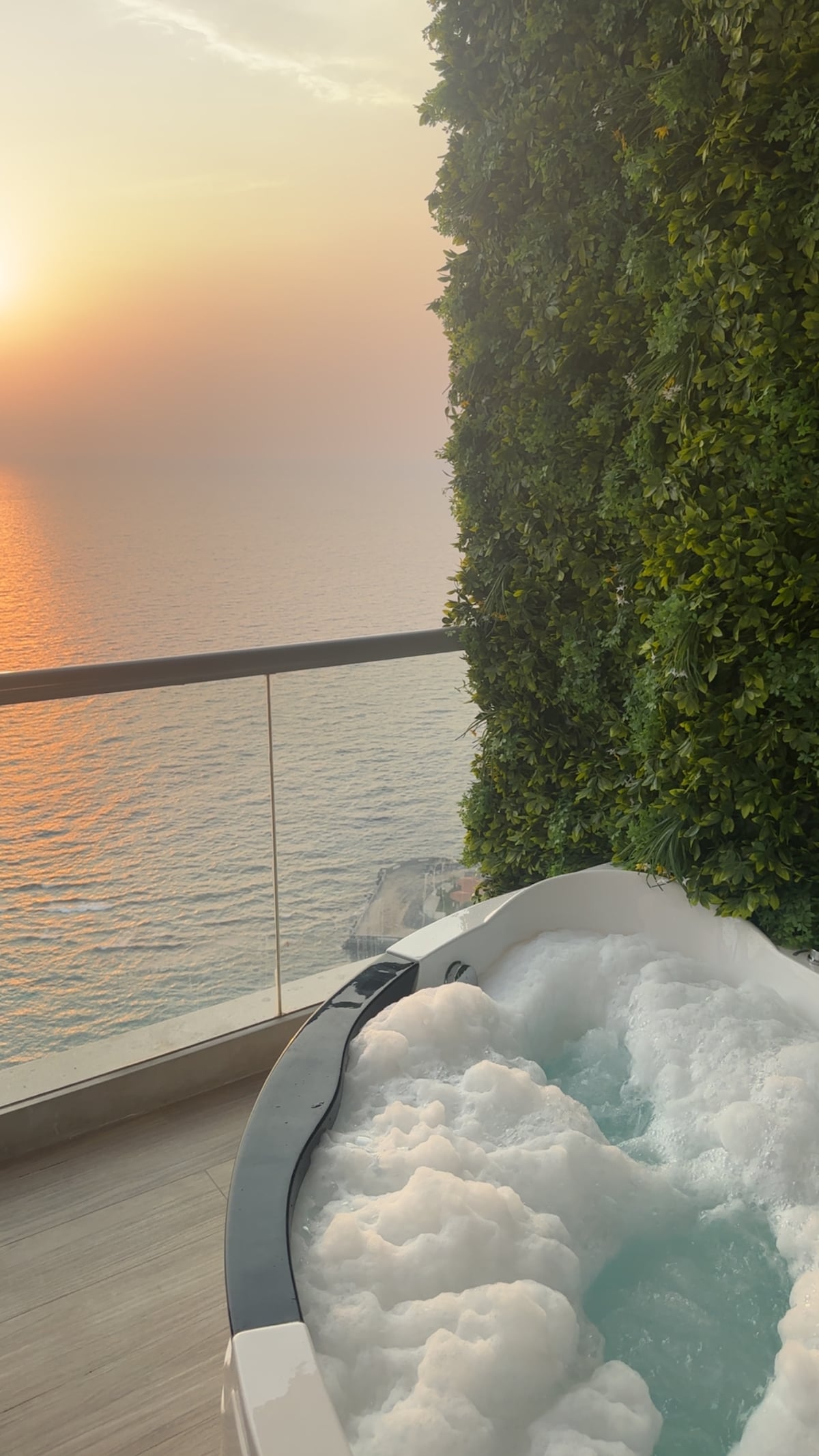 The luxurious Moon Suite in Damac Tower in Jeddah with an open loft design and a rare panoramic view of the sea and the city from two angles. Located in the most prestigious areas of Jeddah and right in the heart of the northern Jeddah Corniche, it features a unique waterfall Jacuzzi with multiple lights, water outlets and back massage, with a direct view of the sea. Enjoy a romantic session on the hammock on the spacious balcony. The suite features a spacious balcony, smart screens, a fully equipped kitchen, a washing machine, 5G internet, self check-in, and event coordination service... for an unforgettable experience!