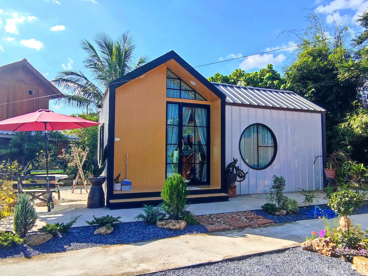 Experience the simple life in our cozy and charming tiny house with the beautiful garden 🏡 - Relax yourself in comfortable bed 🛏️ - Living area with a sofa and smart-TV 🛋️ - Working area💻 - Well-equipped kitchen with electric pot and microwave oven for light cooking 🍽️ - Spacious bathroom with hot water🚿 - Enjoy a grden views from your windows 🌿 - Outdoor seating at patio by the garden🥀 Ps. It’s located just in front the Mauy Thai gym🥊, so it could be some noise from the training
