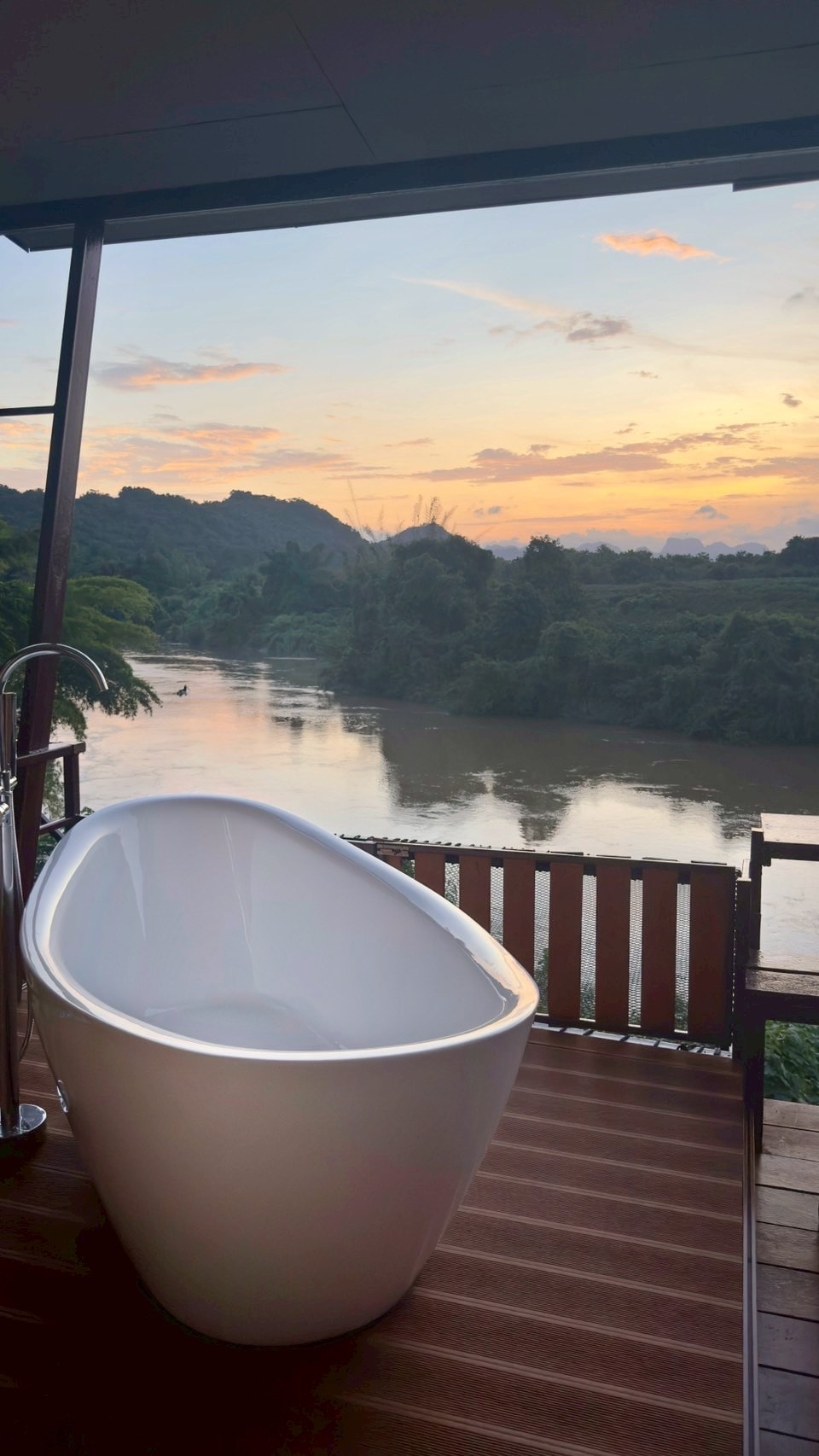 Deluxe chalet gives captivating view of a historic River Kwai in a private and tranquil ambience. The chalets are settled up on a hill near the river bank for you to sense cool breeze from the river.